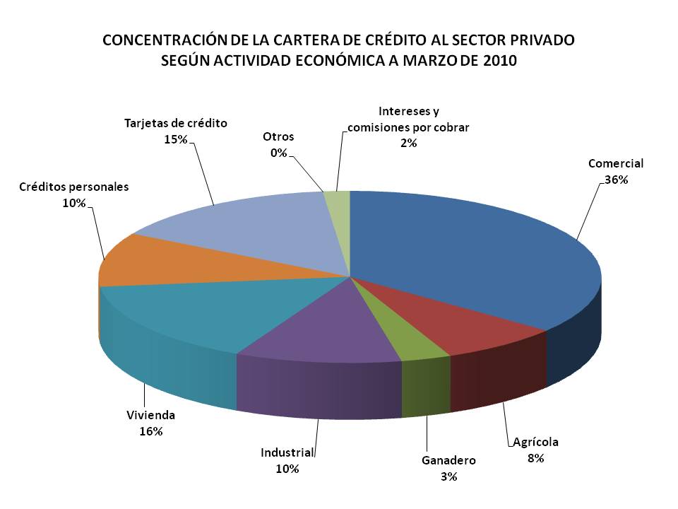 En la actualidad la Banca nicaragüense representa un mercado oligopólico constituido por 7 bancos privados regulados por la Superintendencia de Bancos y de otras instituciones Financieras (SIBOIF): BANPRO, BANCENTRO, BAC, BDF, CITIBANK, PROCREDIT, y BANEX. Estos bancos generan 7,685 puestos de trabajos directos en 328 sucursales, con 152 en Managua y 176 en los departamentos. La distribución regional del crédito muestra que a marzo 2010 el 72% ha sido otorgado en Managua; 6.4% en la Región Occidental; el 7.5% en la Región Norte; el 6.1% en la Región Sur; el 3.0% en Las Segovias; el 2.5% en la Región Central; el 2.1% en el Atlántico; y el 0.6% en Río San Juan.