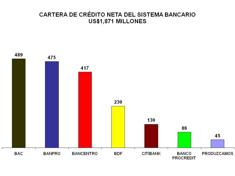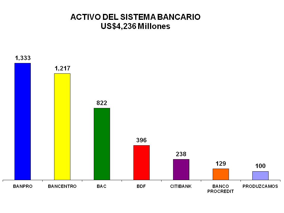 PRODUZCAMOS no puede compararse a ninguno de los 6 bancos comerciales que actualmente existen en Nicaragua, y por lo tanto no se le puede analizar con las mismas razones financieras. Mas aun, la Ley especifica que este banco no está sujeto a los mismos requisitos bancarios contenidos en la legislación de la banca comercial. En todo caso, PRODUZCAMOS sería el banco más pequeño en términos de activos y cartera de crédito; como se puede observar en las siguientes gráficas con datos disponibles al 31 de octubre del año en curso.