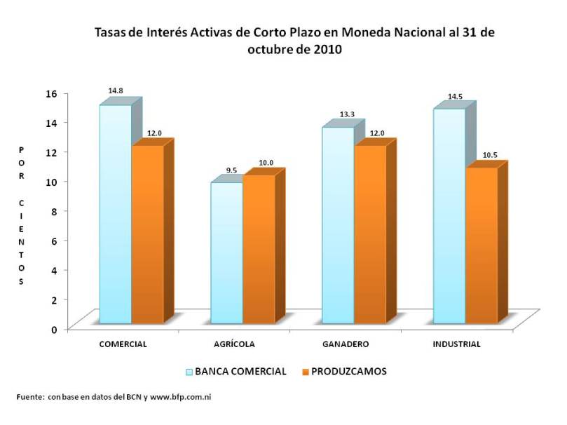 Creo que son loables las políticas de énfasis en seguridad alimentaria y de enfoque participativo y de género que forman parte de los estatutos de PRODUZCAMOS. Además, esperando que en el mediano plazo PRODUZCAMOS sea capitalizado fuertemente con el objetivo de crear efervescencia productiva y desarrollo económico[1], podemos comparar las nocivas tasas de interés del cartel financiero comercial con las menores tasas de interés de PRODUZCAMOS.